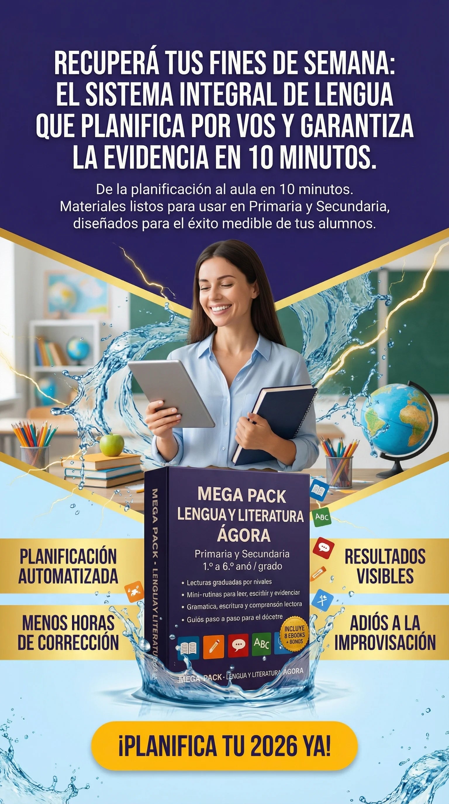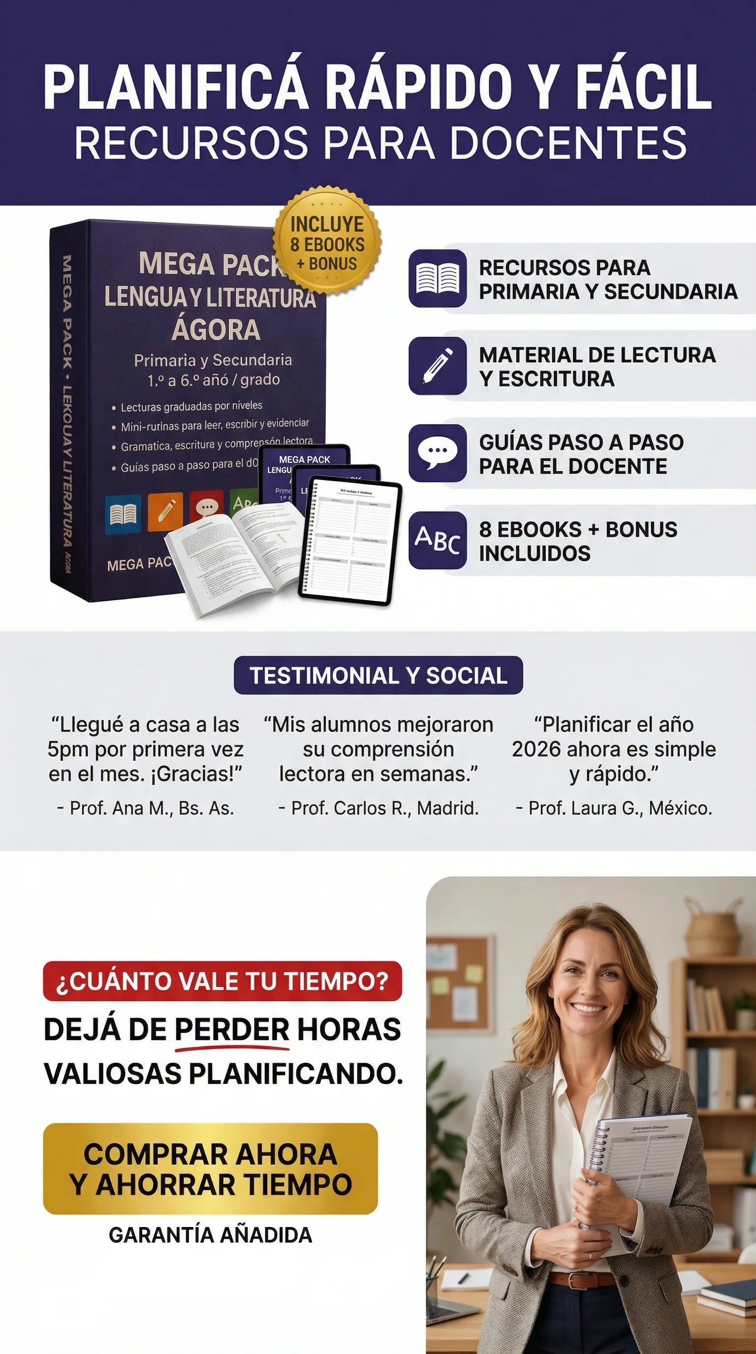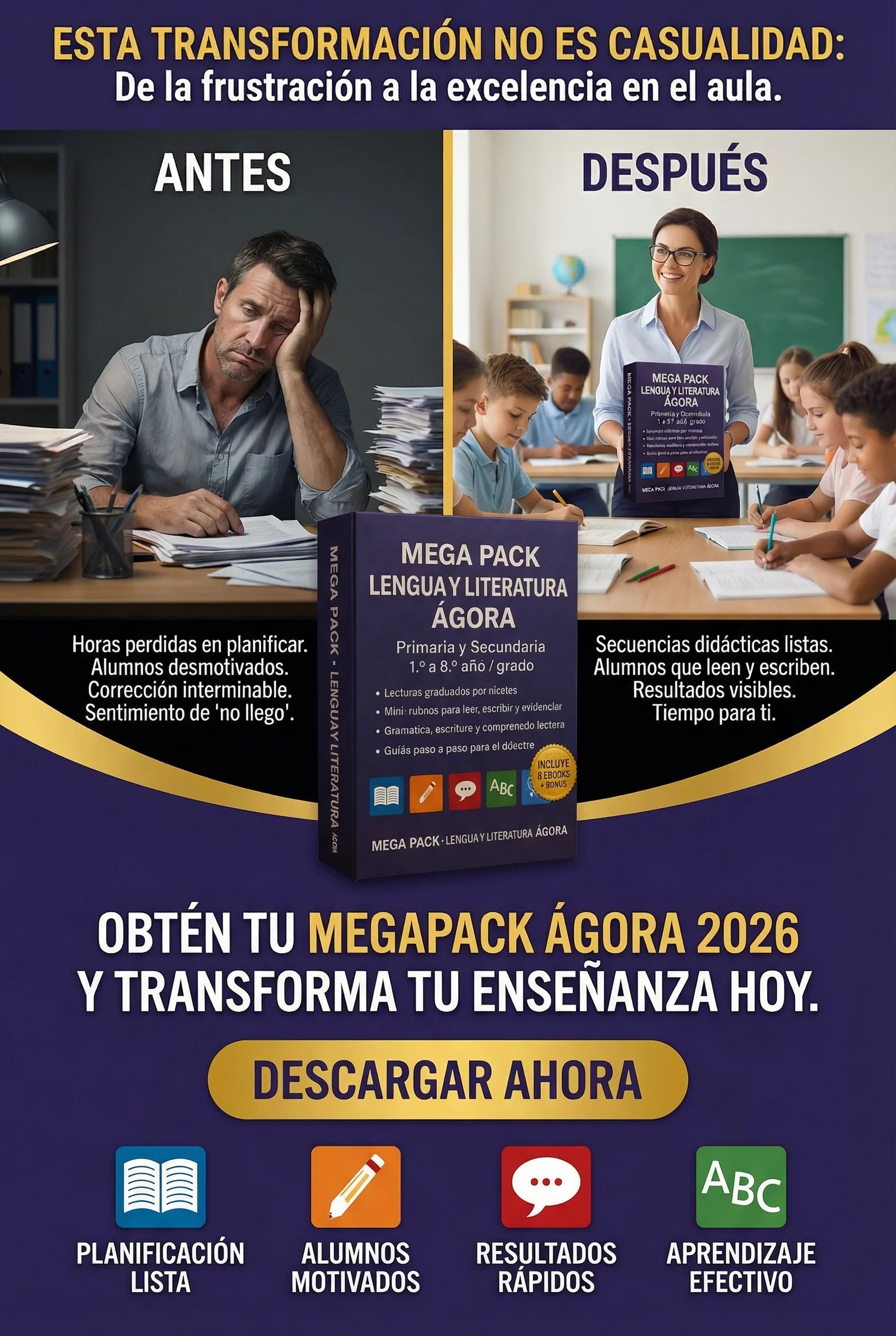 Sí. Algunos manuales están específicamente diseñados para primaria (mini-rutinas, decodificables, gramática básica) y otros para secundaria (escritura académica, argumentación, lectura crítica).
